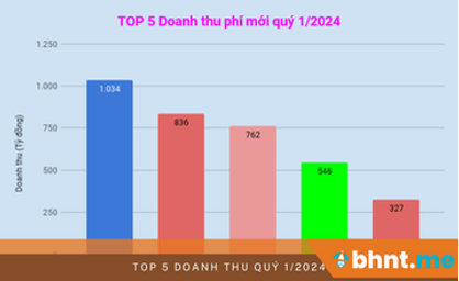 Top 5 doanh thu phí mới của công ty bảo hiểm nhân thọ quý 1/2024