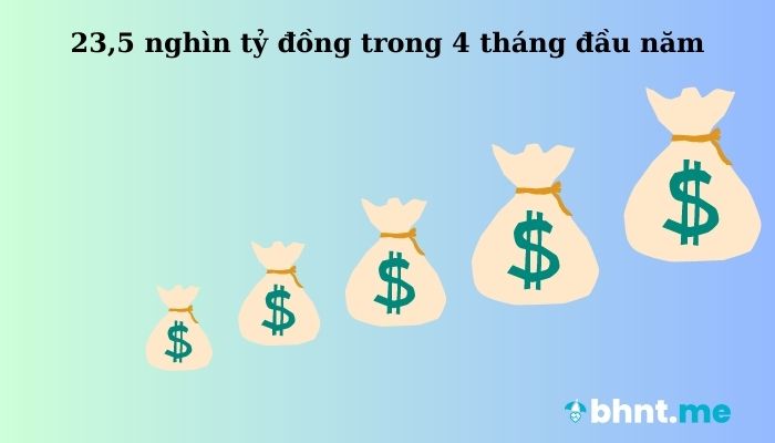 bhnt.me. Bộ Tài chính cho biết, trong 4 tháng đầu năm 2023, tổng doanh thu phí bảo hiểm ước đạt trên 75 nghìn tỷ đồng, tăng 1,12% so cùng kỳ năm trước; chi trả quyền lợi bảo hiểm ước đạt 23,5 nghìn tỷ đồng, tăng 20,71% so với cùng kỳ năm trước.
